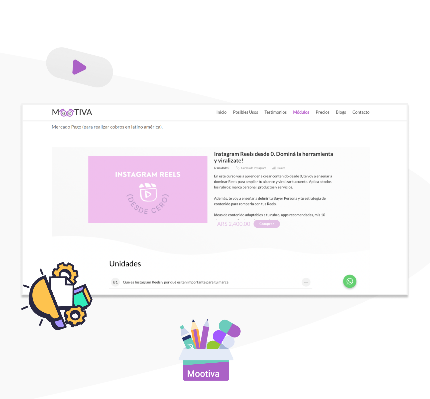 Recomiendo a todos los emprendedores que como yo están buscando una plataforma para poder mostrar sus cursos de manera profesional que chequeen los servicios de mootiva. Nos ofrecen asesoramiento constante y pagando en pesos!